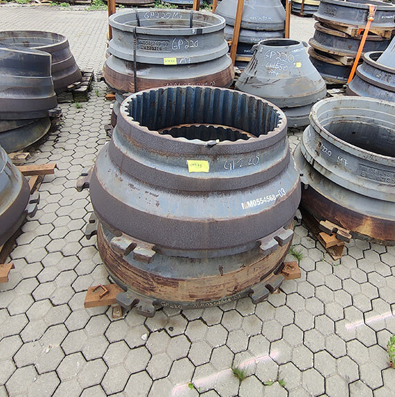 SCP prodaje potrošne i rezervne dijelove za Metso* GP220 konusnu drobilicu. Naši potrošni dijelovi drobilice proizvedeni su s različitim sadržajem mangana kako bi se maksimalizirao učinak i vijek trajanja za vašu specifičnu primjenu konusne drobilice.